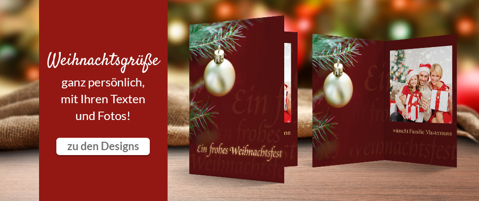 Sie finden bei uns außerdem eine große Auswahl an Mustertexten und Sprüchen zu Anlässen rund um Geburtstag, Geburt, Taufe, Kommunion, Jugendweihe, Konfirmation und und und... So wie eine Vielzahl kreativer Einladungskarten zu besonderen Anlässen wie Weihnachten, Silvester, Gartenparty, Einladung zum Brunch oder Grillfest. Auch die Festtafel können Sie mit rabbitprint.de passend dekorieren – Sie erhalten bei uns Menükarten und Tischkarten (bedruckt mit Ihren Gästenamen oder zum Selbstbeschriften), Flaschenetiketten mit Ihren Texten und Bildern, Geschenkanhänger und vieles mehr gestaltet in Ihrem Wunschdesign.